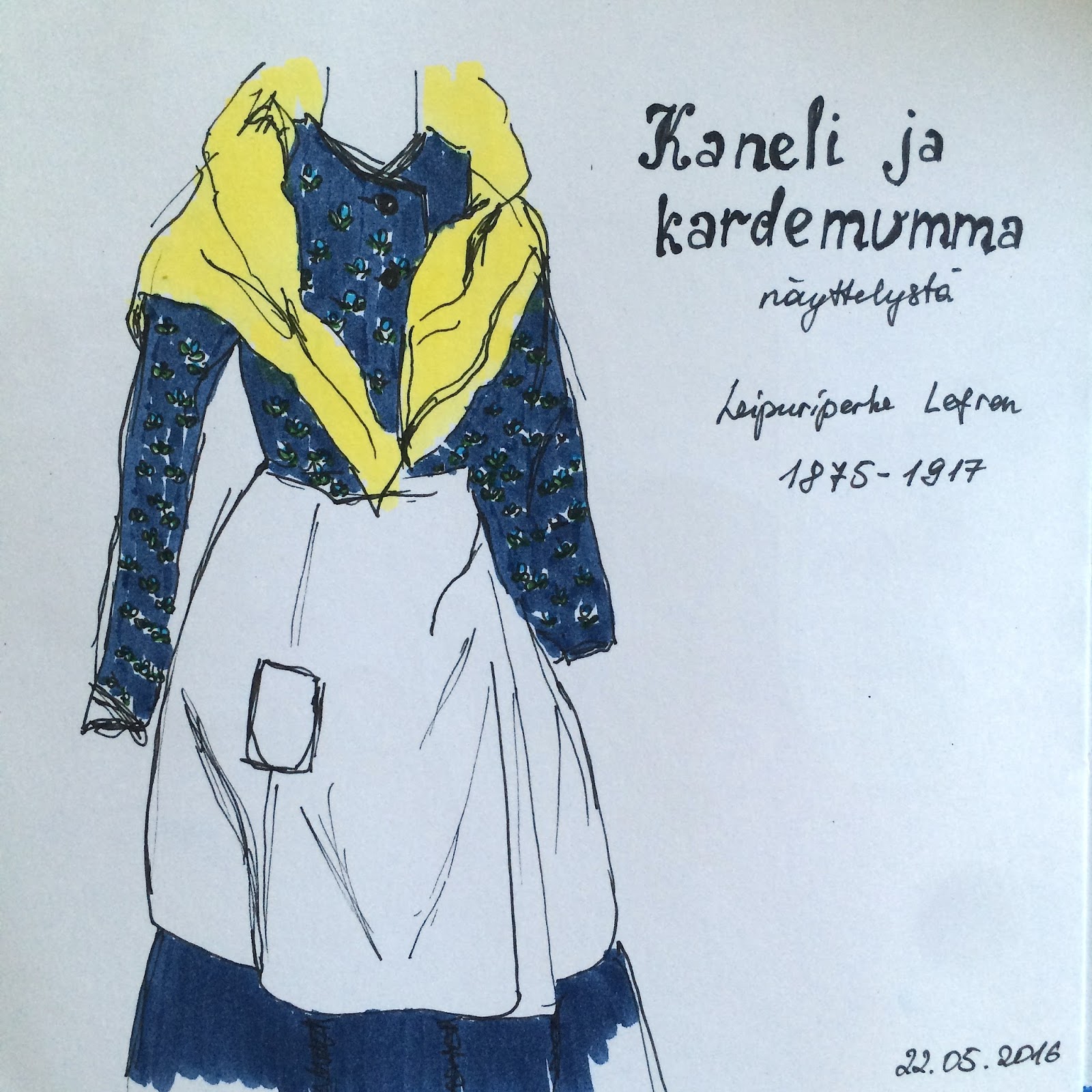 | Ходили на выставку. Выставка просто супер, про жизнь одной семьи пекарей, годы написаны на рисунке, зарисовать удалось только вот такой костюм той эпохи.. |